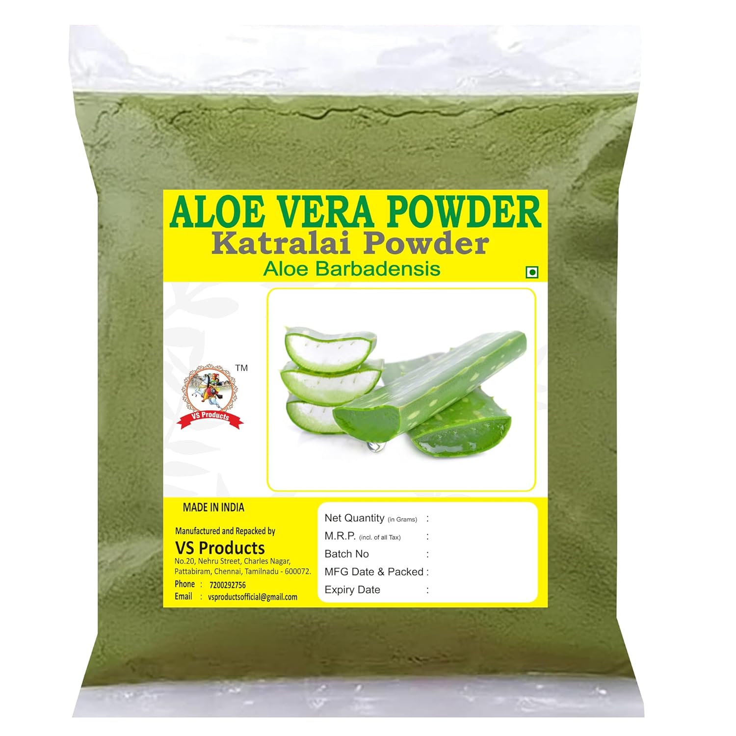 For Use : Mix aloe vera powder with water and make a fine paste. Apply it on face and massage for up to 5 minutes and rinse well.