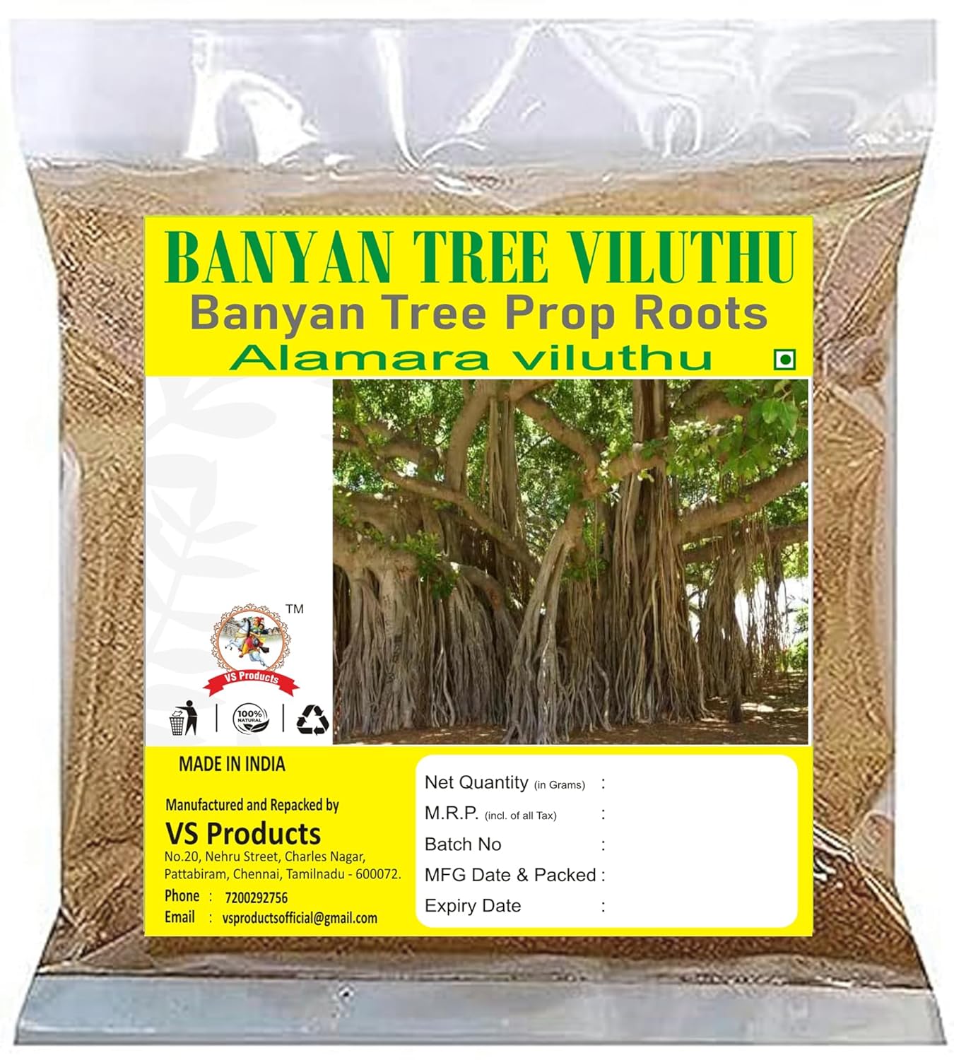 Banyan Root Powder, 100g, Bargad Jad, Marri Udala, Ficus Benghalensis Root, Aalam Ver Powder, Good For Tooth Problems quantity