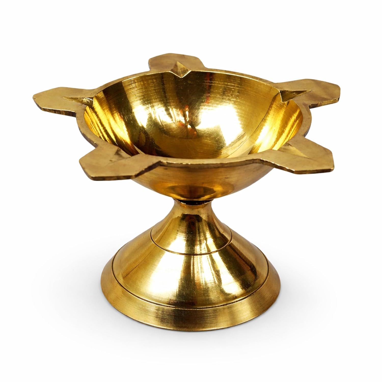 Traditional Brass Diya: Crafted in a classic design suitable for daily pooja, home mandir, and temple use