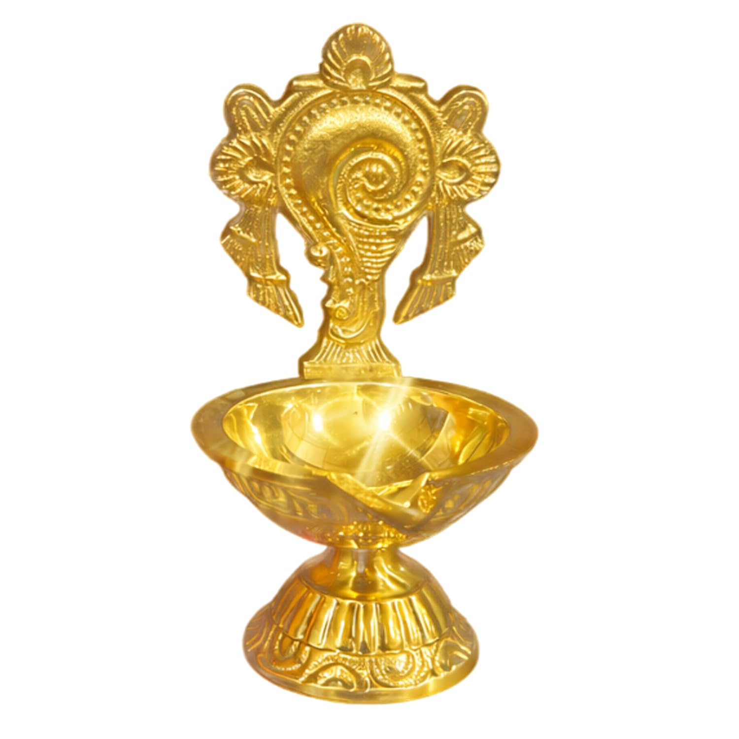 Decorative & Functional Design : Features an ornamental back plate and stable base for convenient placement on pooja shelves or altars.