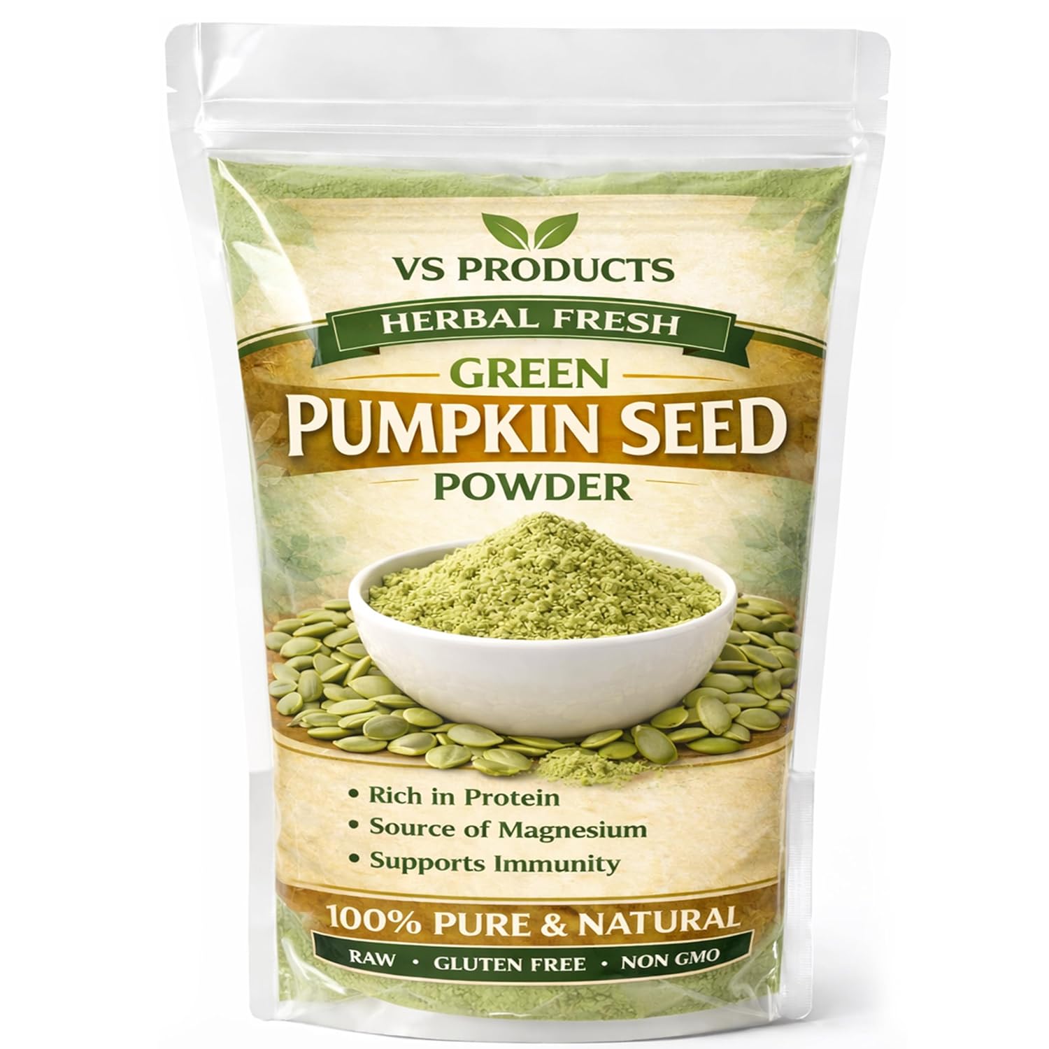 Made from carefully cleaned and finely ground pumpkin seeds