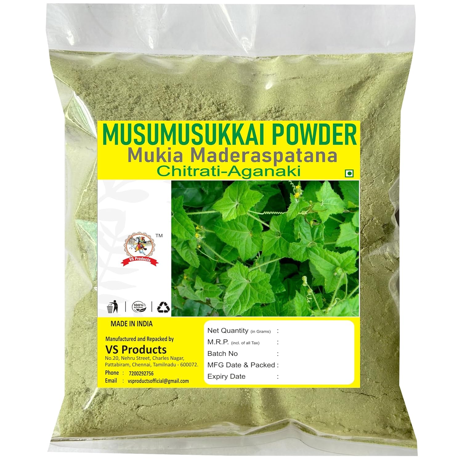 Musumusukkai Powder, 100g, Chitrati, Bilavi, Solanum Trilobatum, Musumusukaya, Mukia Maderaspatana
