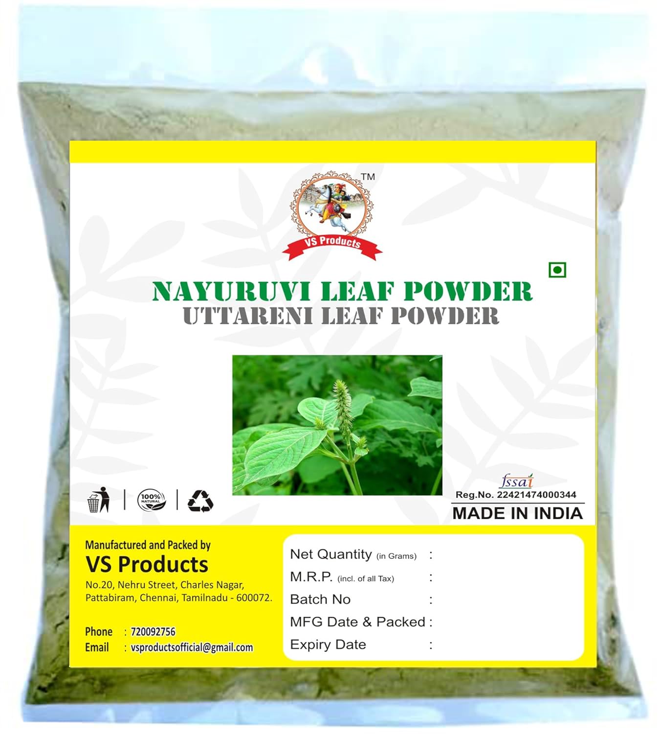 Nayuruvi Leaf Powder is made from carefully selected leaves of the Achyranthes aspera. The leaves are cleaned, shade-dried, and finely ground to maintain a smooth texture and natural consistency.