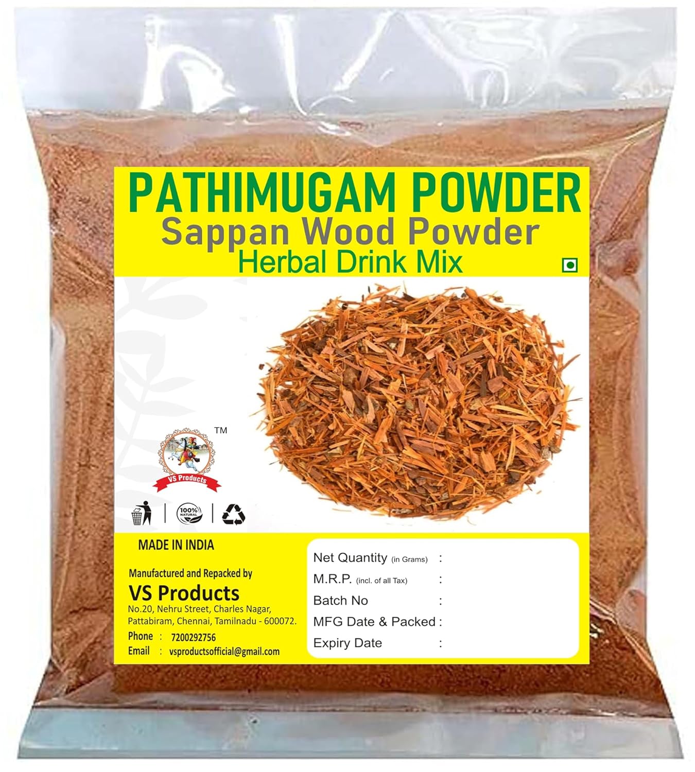 Pathimugam Powder is made from carefully selected wood of the Caesalpinia sappan. The wood is cleaned, dried, and finely ground to achieve a smooth texture and consistent quality.