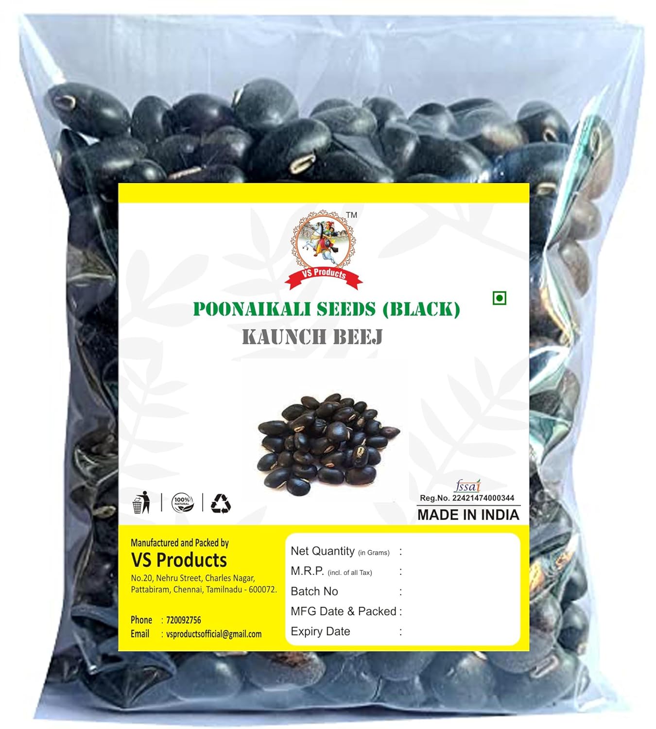 Poonaikali Seed (Black), 100g, Mucuna Pruriens|Black Kaunch|Poonaikali|Kapikachhu|Black Velvet Bean