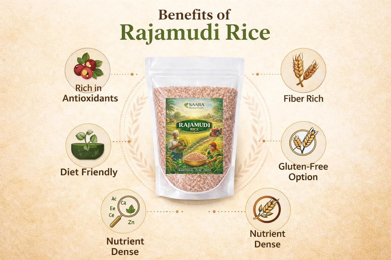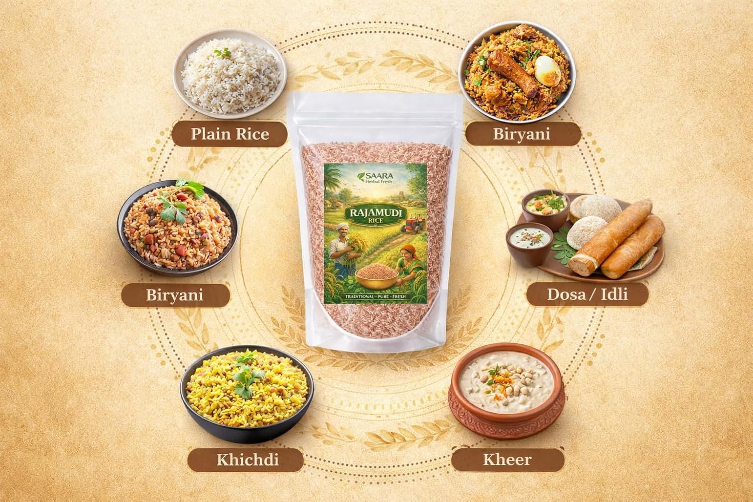 Rajamudi Rice is a traditional rice variety commonly used in South Indian cooking. It is known for its natural grain appearance and is suitable for preparing a wide range of everyday meals. This rice can be used for regular rice dishes as well as traditional recipes. Rajamudi Rice is suitable for cooking methods such as boiling and pressure cooking. It can be included in daily meals and is often chosen for its traditional usage in home kitchens. Packed carefully for convenience, it fits well into routine pantry storage.