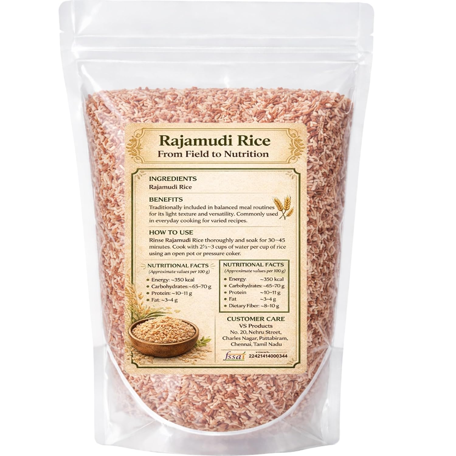 Rajamudi Rice (Raja Mudi) | Karnataka Heritage Red Rice 500g | Rajamudi Arisi | Ideal for Daily Cooking